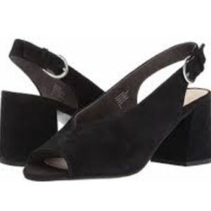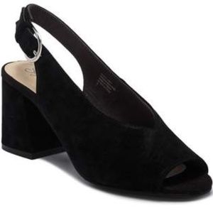 Suede leather. Slingback peep toes.