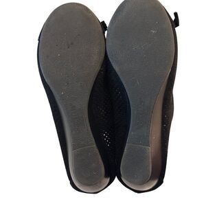 Seychelles Black Suede Wedge Ballet Flats Size 6 Bow Detail Comfort Shoes