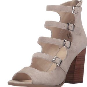 A chunky block heel updates the look of a laddered-strap sandal that adjusts for a perfectly comfortable fit.