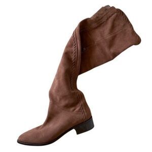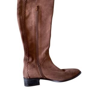 Beautiful brown suede boots with lacing detail through, 2 inch heel, perfect condition, online for $500