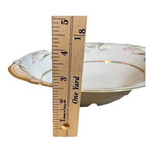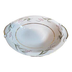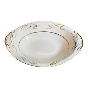 Seyei Bowl Serving Porcelain White Gold Trim Flowers Oval Nagoya Japan 10.5"