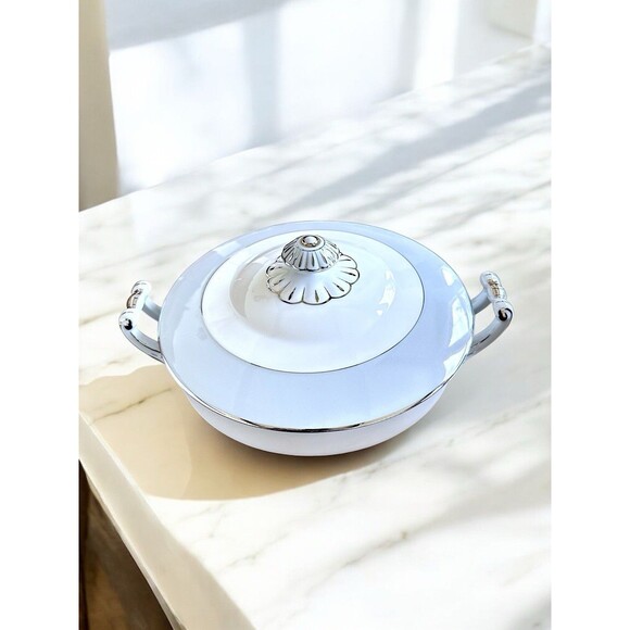 Seyei Fine China Nagoya Japan 398 China Casserole Dish Gray Platinum Silver