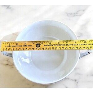 Elevate your table setting with the Seyei Fine China Nagoya Japan Colored China Casserole Dish, a true gem for those who appreciate simple antique elegance. The dish features a glossy finish with a stunning platinum silver lining, enhancing its visual appeal. With its round shape and single compartment, it's perfect for showcasing your culinary creations in style. Crafted in Japan between 1900-1919, this covered dish is a part of Seyei Fine China's product line #398. It measures 8 inches in length, 10 1/2 inches in width with handles, and stands 5.5 inches tall. The white, gray, and silver pattern exudes a simple yet sophisticated charm, making it a timeless addition to your collection. Hand wash only care ensures the preservation of its historic beauty.