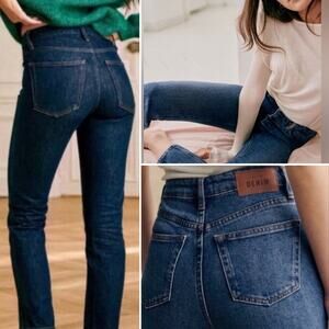 Sezane denim slim straight jeans high rise.