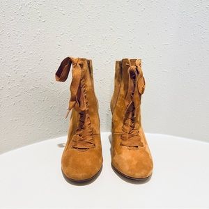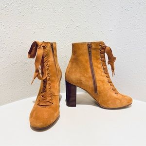 Absolutely gorgeous soft suede lace -up almond toe booties from Sezane!