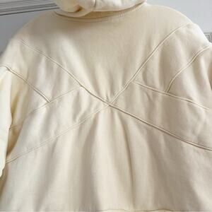 Sezane Aluna Hoodie Sweatshirt Organic Cotton Sweat Shirt Top Ecru Cream Yellow
