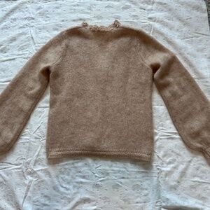Sezane Angelie cardigan XXS in light beige in excellent, almost brand new condition. Beautiful scalloped edges and bubble sleeves. Barely worn (a couple of times) and very well cared for. Hand washed and stored folded. Feel free to ask any questions :)