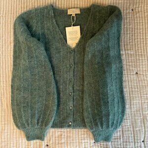 Super kid mohair and merino wool cardigan with long, slightly ballooned sleeves