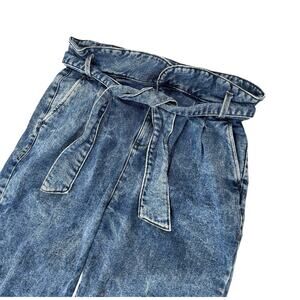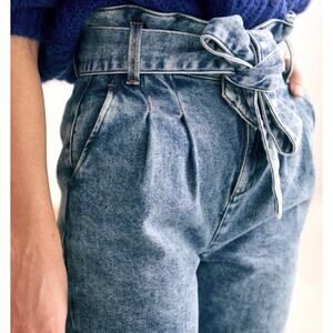 Sezane Austin Paperbag Jeans Womens Size L - 40 Blue Bleached Denim High Waist