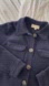 Chic dark blue cardigan. Features stylish tortoise buttons. Perfect for layering.