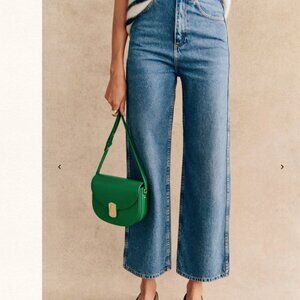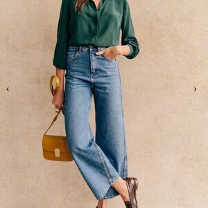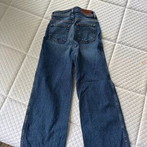 Stylish wide leg pants. Classic blue denim. Perfect for casual wear.
