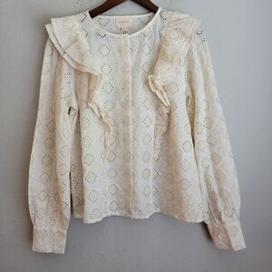 Embroidered cotton blouse with feminine ruffle detail