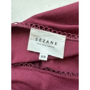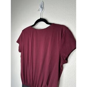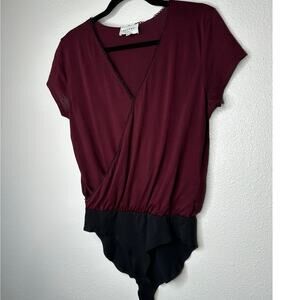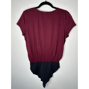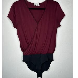 Sezane Burgundy & Black Thibault Bodysuit Crossover Neckline Short Sleeve