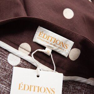 New with tags Sezane Camillo Trousers Polka Dot Pants Wide Leg Ecru Chocolate Brown Size 42. Chic and timeless, these Sézane Camillo trousers feature a playful polka dot print in ecru and chocolate brown. Designed with a flattering high-rise waist and wide, flared leg, they’re perfect for effortless everyday style or elevated occasions.
