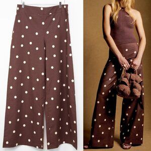 Sezane Camillo Trousers Polka Dot Pants Wide Leg Ecru Chocolate Brown Sz 42 New