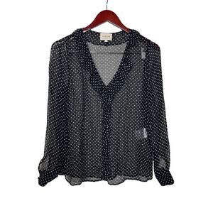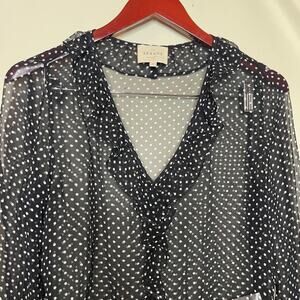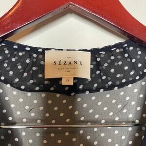 Sezane Capucine polka dot black white sheer silk blouse ruffle sz 38 US 6