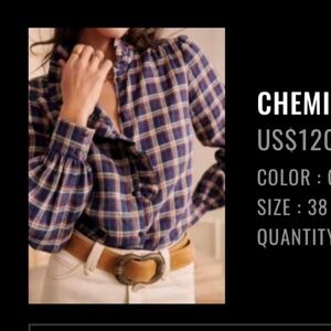 Sezane Chlo Shirt Carreaux Oxford - Size 38