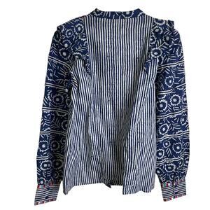Sezane Coletta Shirt 34 Womens Floral Printed Button Up Embroidered Ruffle