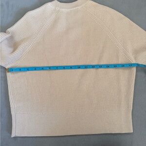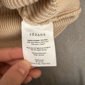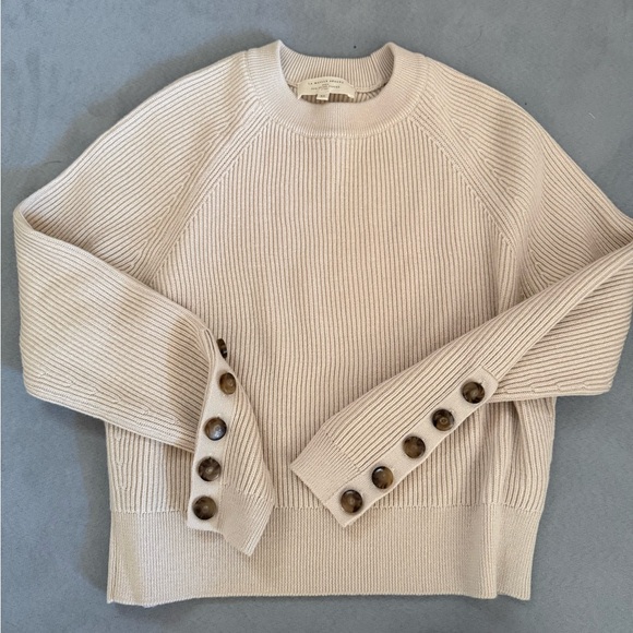 Sezane crewneck sweater in a soft cream rib knit. Decorative button detailing along the cuffs. Cozy yet refined silhouette. Easy to dress up or down.