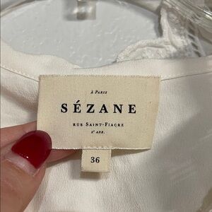 Sezane Cream Ruffle-Trim Button Blouse