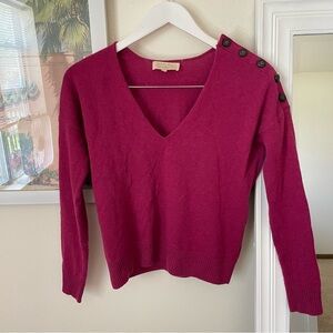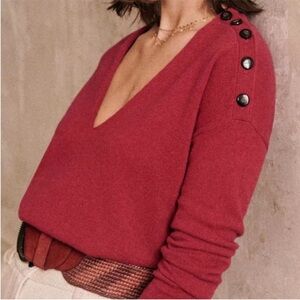 Sezane Curtis Cashmere Wool V-Neck Button Sweater in Raspberry XXS