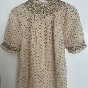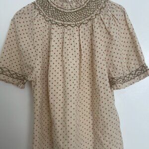 Beautiful Sezane Blouse, Linen material. I never wore it because it's a bit on the big side. Size can easily fit up M-L. The colour is super nice. Ask me any questions.