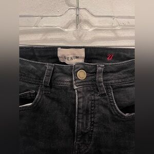 Waist 27" Sezane Black Denim Jeans. Ripped at crotch seam (pictured) but an easily stitch fix, good condition otherwise. Super comfy jeans!