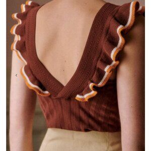 Sezane Erika Knit Top Ruffle Sleeveless Sweater Brown Sz XXS