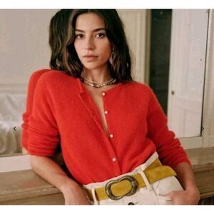Sezane Gaspard Cardigan Jumper sweater Red Alpaca Mohair Size Medium