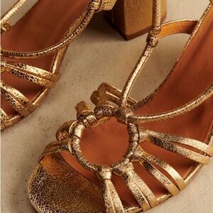 Sezane Gold Strappy Gloria Heel Sandals Size 37 - New In Box