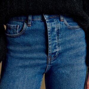 Chic high rise jeans by Sezane. Timeless blue denim. Perfect for versatile styling.