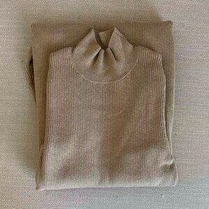 Sezane Hillary Midi Dress XSmall Camel Knit French Merino Wool Elegant Classic