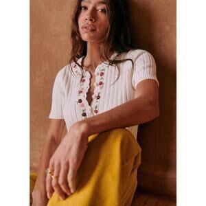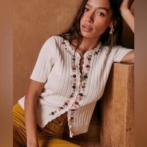 Sezane Ilena Flower Embroidery Cardigan White - FR Size XS