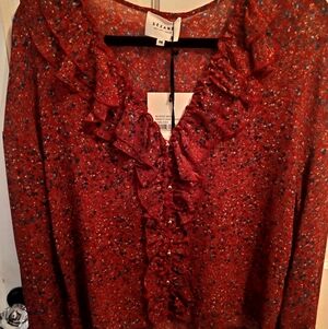 Sezane Isaac Floral Ruffle Blouse