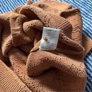 EUC! Pet and smoke free home. A perfect lightweight, camel colored cotton cardigan for fall. Extra button still attached to care label.