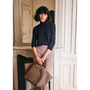 Sezane Jacob Navy Blue Wool Cashmere Sweater Button Detail Extra Small XS