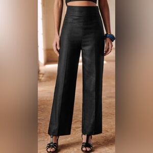 Sezane Jenson Linen Straight Leg Pants Black Size FR46/US 14