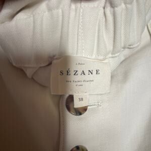 Sezane Jones Cream wool blend high waist wide leg exposed buttons pants 38 US 6. Excellent condition, elastic back waistband, exposed brown buttons and large belt loopholes. True to size