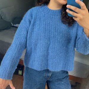 gorgeous blue sezane sweater! Note that it shrunk a little when I washed it, which is reflected in the price. Has always been hang dried. Otherwise, no issues and the sweater is in excellent condition.