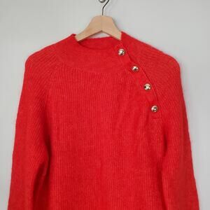 Sezane La Maille Rudy Jumper Mohair Mock Neck Sweater Red Knit Stretch Size M