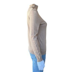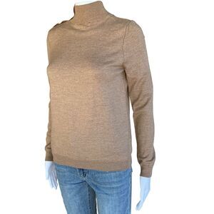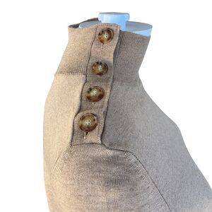 Sezane La Maille Womans Merino Wool Mock Neck Sweater Size S Camel Button Detail