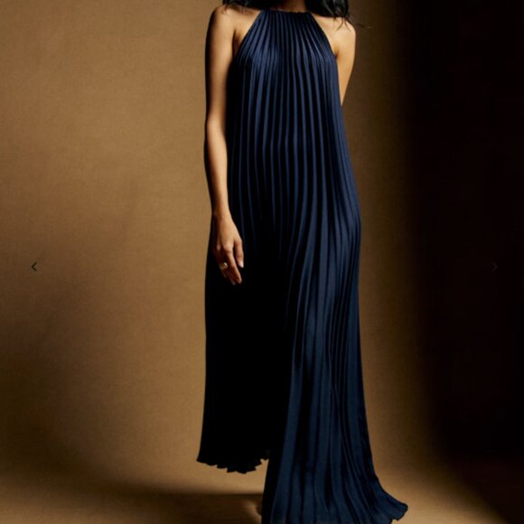 This beautiful navy dress is so effortless and chic. With a tie top, you can easily adjust and it has a gorgeous open cut low back. This is barely worn.