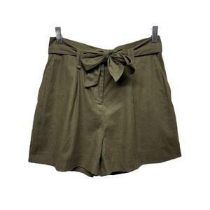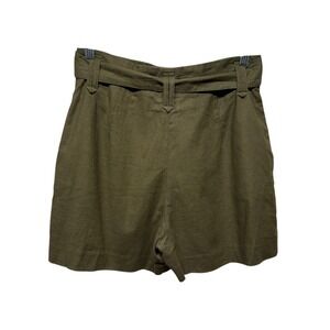 Sezane Linen Blend Women Shorts Sz 38 Belted High Waist Green Coastal Minimalist