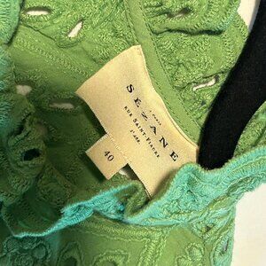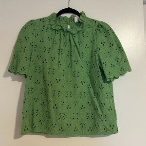 Sezane Louisah Blouse - Sz. 40 (US 8), Bright Green Eyelet S/Slv Blouse