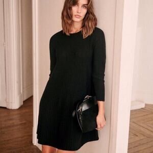 Sezane Luxe Merino Wool Blend Ribbed Janice Mini Dress Black Size XS