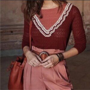 Sezane Mael La Maille Ruffle V Long Sleeve Sweater