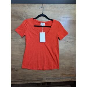Sezane Malcolm Tee Shirt Womens Size 2XS Orange Short Sleeve V-Neck Pullover