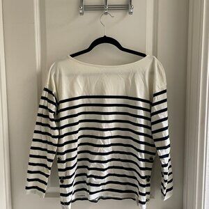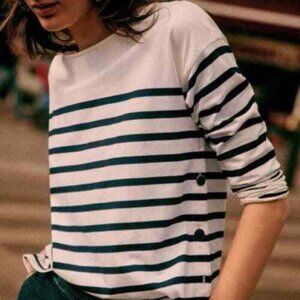 Oversize 3/4 length sleeved Breton-style striped top in 100% organic cotton
