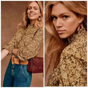 Sezane Martine Blouse RARE Ochre Floral Print Top Size 36 US Size 2 HTF