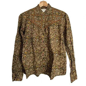 sezane blouse, martine top, floral button up shirt, prairiecore style, ochre floral blouse, romantic boho top, retired sezane, soft girl fashion, cottagecore outfit, feminine vintage-style top, French fashion, size 36 blouse, spring layering, floral shirt